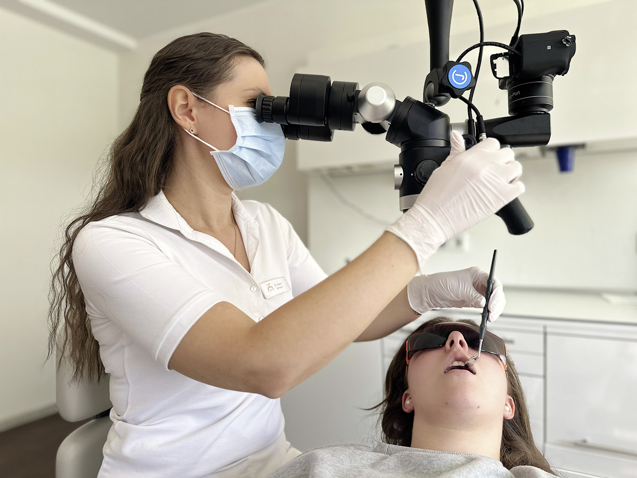 Dabei setzen unsere speziell in diesem Bereich (Endodontie) weitergebildeten Zahnärzte auf den Einsatz eines hochmodernen Mikroskops.
